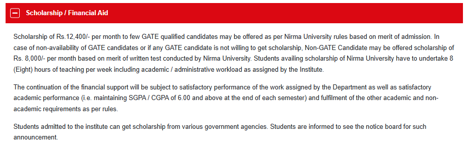 Institute of Technology, Nirma University Ahmedabad M.Tech Embedded Systems fees in first year is ₹ 3.06 Lakhs. The detailed fees is mentioned below.Institute of Technology, Nirma University Ahmedabad Hostel Fee for Male is ₹ 94,000 to 1.54 Lakhs. Hostel Fee for Female at Institute of Technology, Nirma University Ahmedabad is ₹ 93,000 to 1.54 Lakhs.