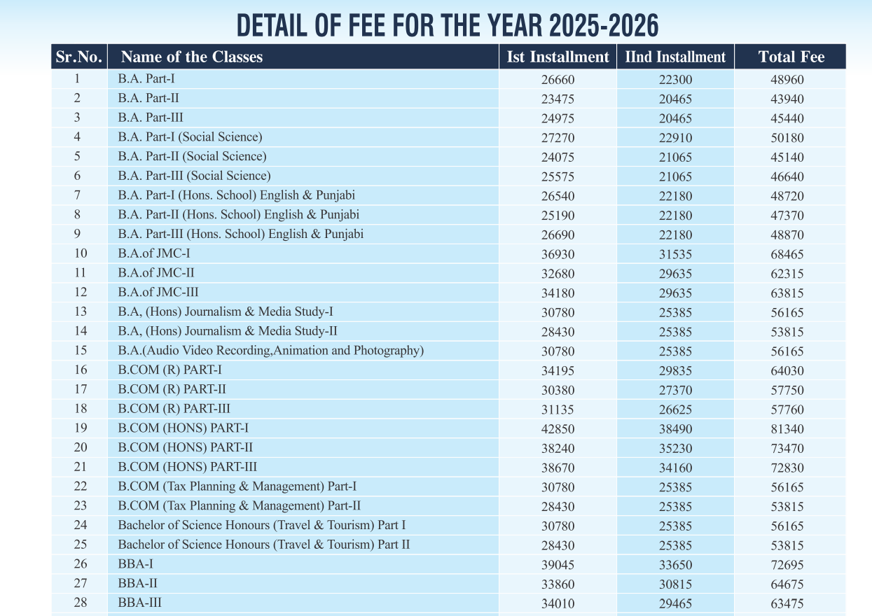 BBA at Khalsa College Amritsar is a 3 Years Degree. The course is offered On Campus as a Full Time program. Khalsa College Amritsar BBA First Year Fees is INR 72,695 for 2025.
