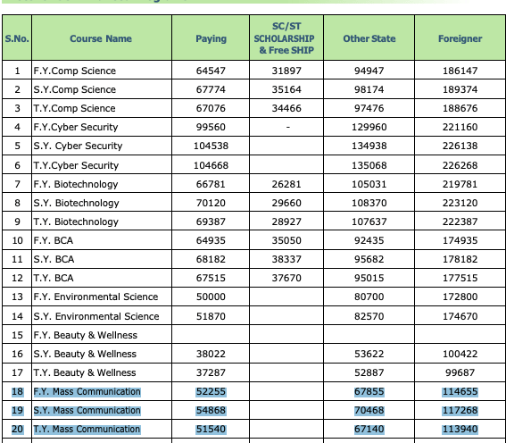 M.E.S. Abasaheb Garware College Pune offers a total of 50 seats for B.Voc Mass Communication.