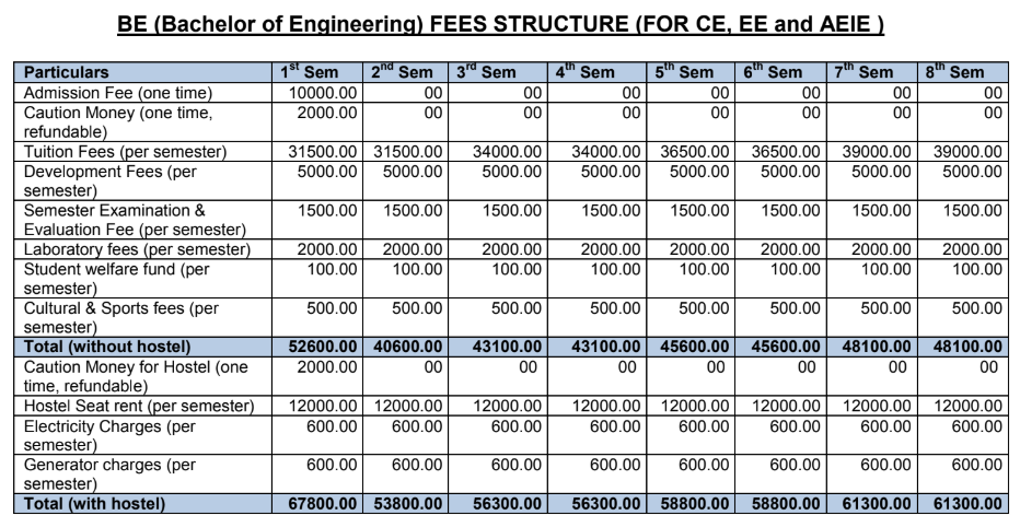 | Semester Wise Fees | 44100 | 37100 | 37100 | 37100 | 37100 | 37100 |