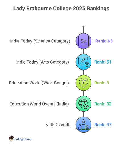 Lady Brabourne College has been ranked by different institutions, including NIRF, India Today, and Education World. The details for the Lady Brabourne College Ranking are mentioned in the image below: