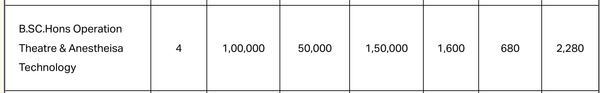 - The total fees for B.Sc Anaesthesia & Operation Theatre Technology is ₹ 5 Lakhs.