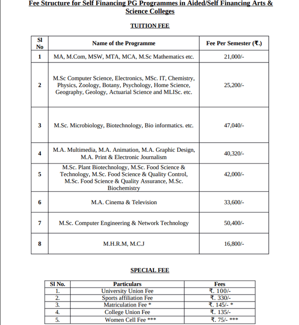 Earlier, M.Com Marketing fees at M.E.S. Asmabi College Kodungallur was ₹ 75,000 (in 2019) for the entire course duration. This shows a fee increase of ₹ 9,785 over the year.