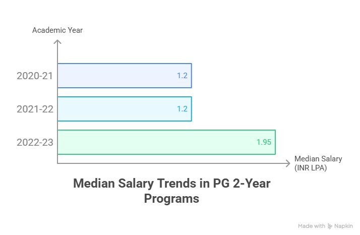 In the PG 2-year programs, the median salary remained around INR 1–2 LPA, indicating consistency. Below is a detailed comparison of placements across PG 2-year: