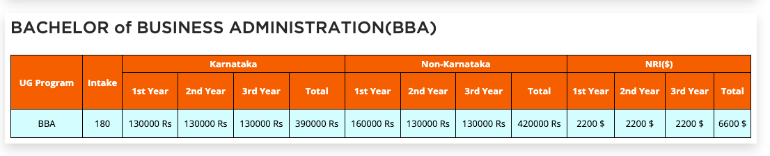 Ramaiah College of Arts, Science and Commerce Bangalore offers a total of 180 seats for BBA . Candidates must have at least 10+2/PUC to be eligible for admissions.