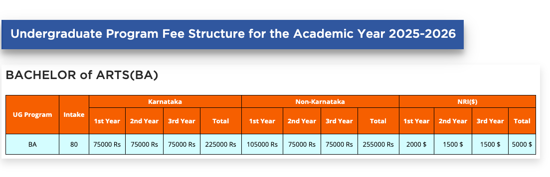 | Fees (2025 - 2026) | Year 1 (in INR) | Year 2 (in INR) | Year 3 (in INR) |