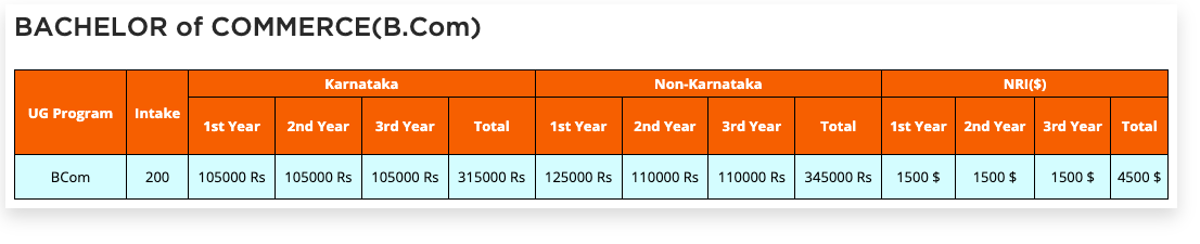 B.Com at Ramaiah College of Arts, Science and Commerce Bangalore is a 3 Years Degree. The course is offered On Campus as a Full Time program. Ramaiah College of Arts, Science and Commerce Bangalore B.Com First Year Fees is INR 1,05,000 for 2025.