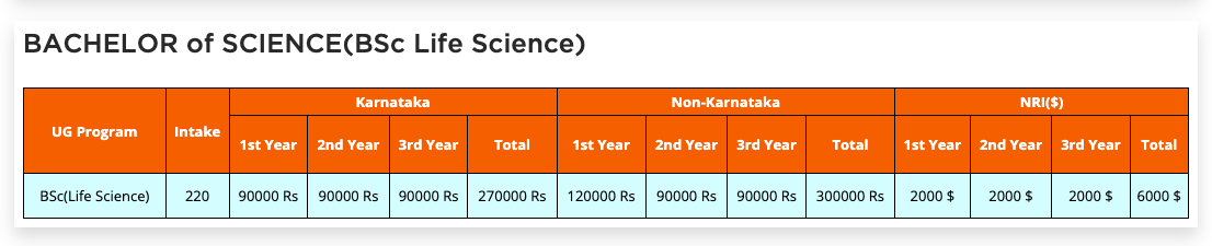 B.Sc Life Sciences at Ramaiah College of Arts, Science and Commerce Bangalore is a 3 Years Degree. The course is offered On Campus as a Full Time program. Ramaiah College of Arts, Science and Commerce Bangalore B.Sc Life Sciences First Year Fees is INR 90,000 for 2025.