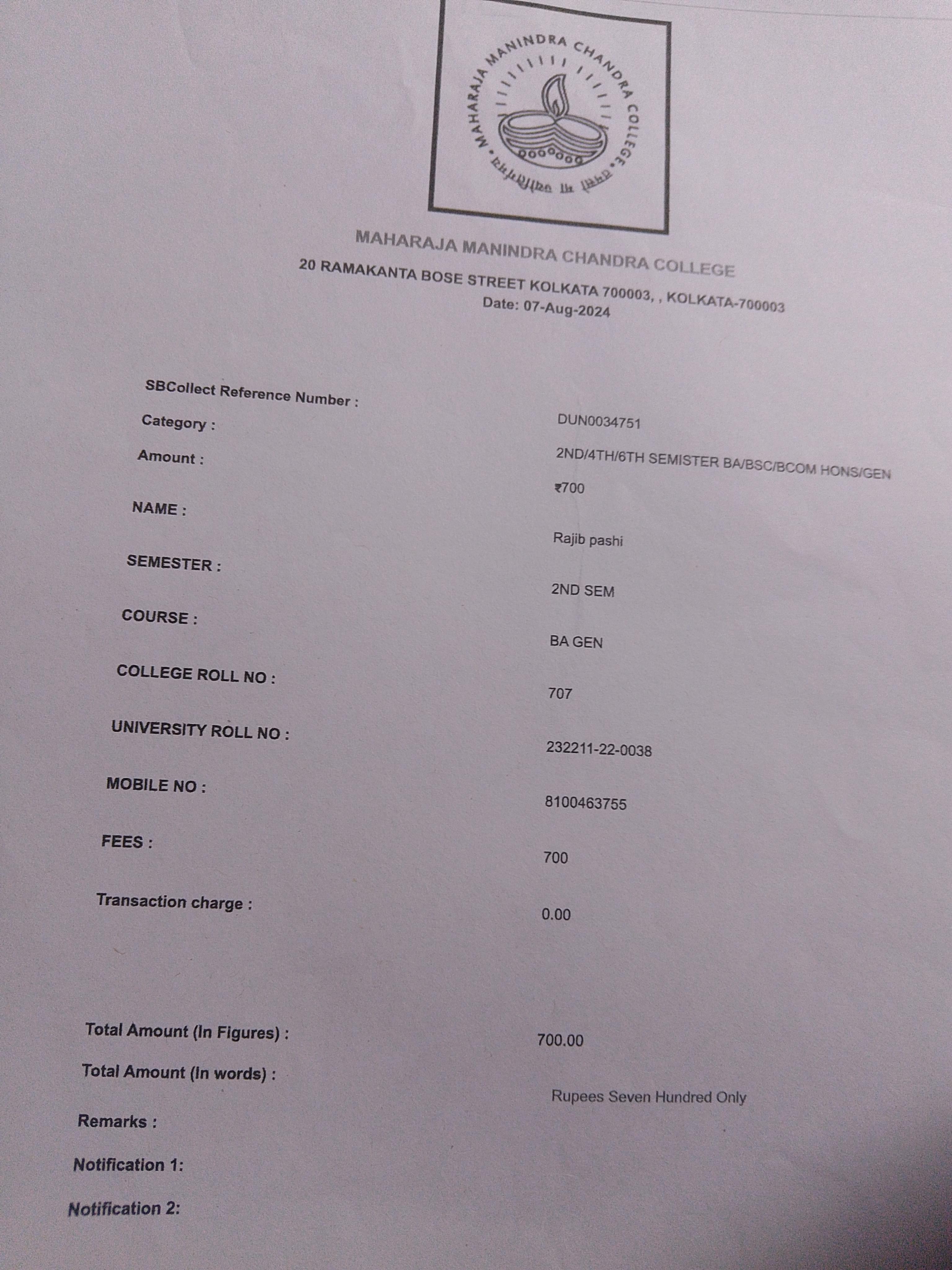 Ques. What is the application fee to apply for Maharaja Manindra Chandra College?