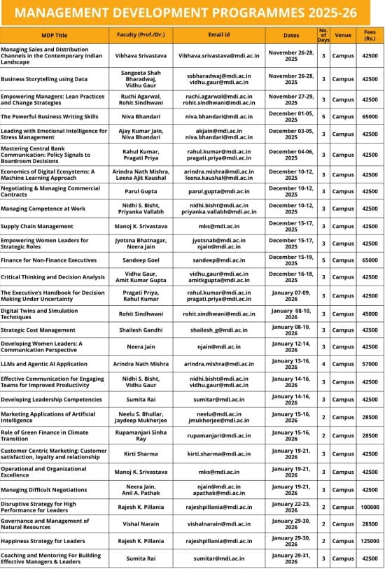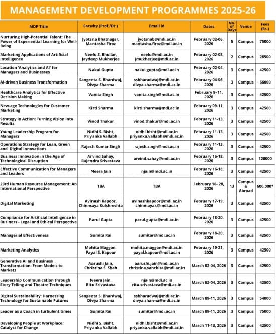 Find detailed MDI Gurgaon MDP fees, eligibility, admission dates, cutoff and ranking below.