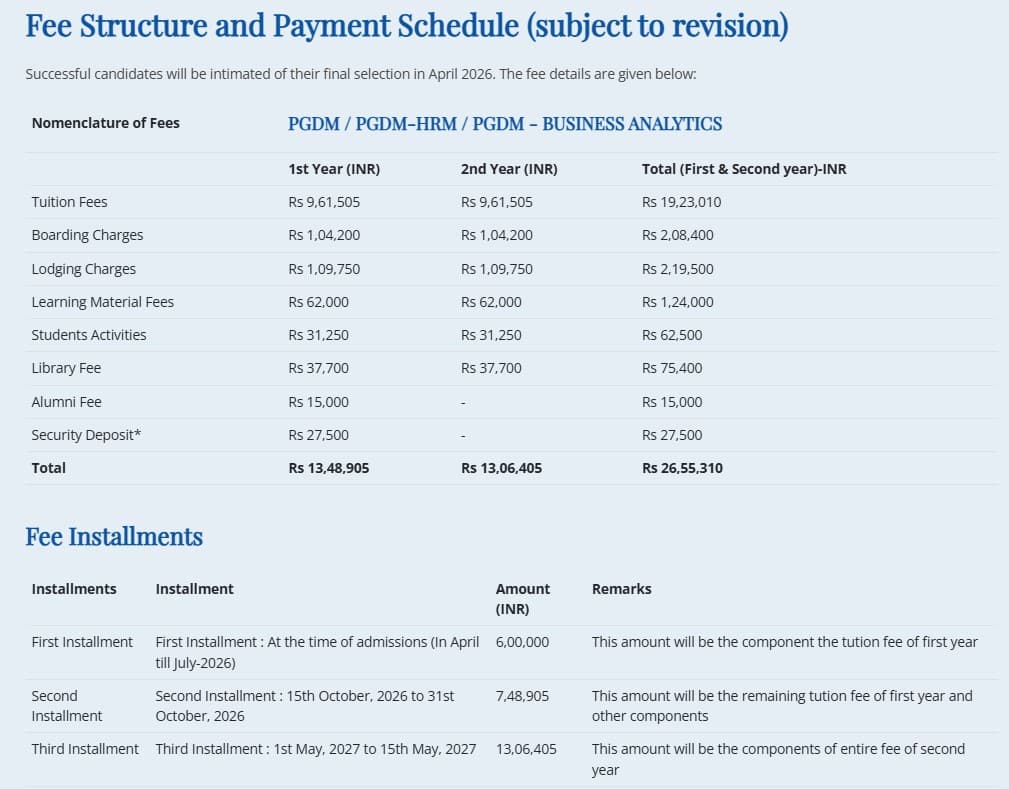 Most roles are in Consulting, Marketing, and Finance. The total study cost is 24 Lakhs: 12 Lakhs for tuition and additional fees for hostel and student activities. No scholarships are available. The business analytics program shares placement processes with the PGDM program, facilitated by skilled staff. In the first year, students undertake minor projects that reflect industry practices.