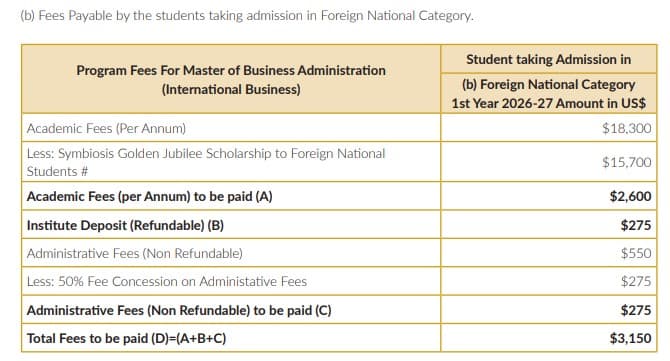 | Fee Type | Total Amount (INR) |