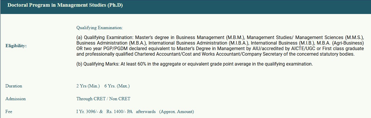 The minimum eligibility for admission to Ph.D Management at IMS BHU is Post Graduation + RET.