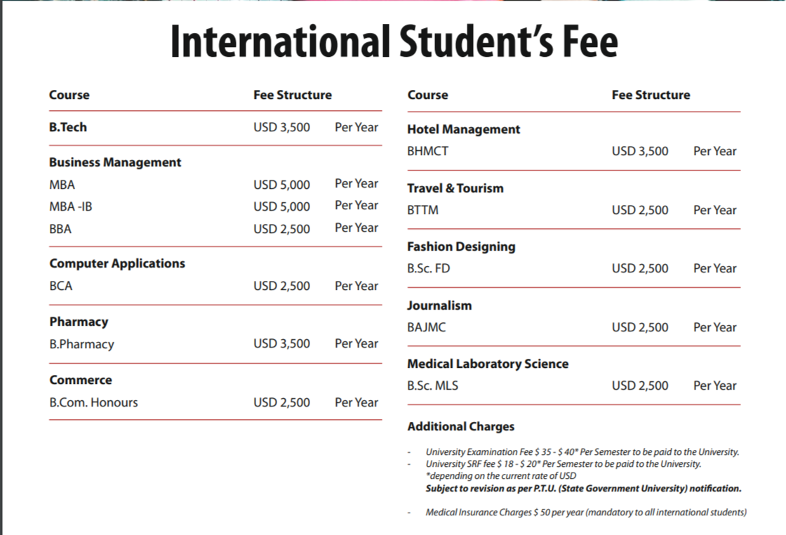 | Semester Wise Fees | ₹35500 | ₹33500 | ₹33500 | ₹33500 | ₹33500 | ₹33500 |