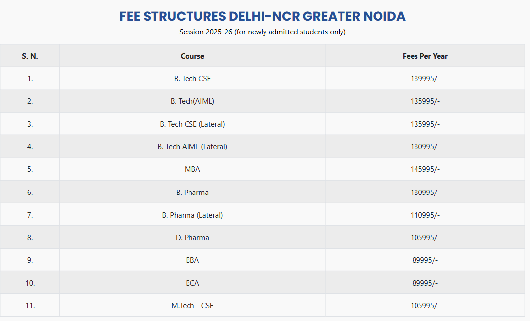 | Fee Type | Total Amount (INR) |