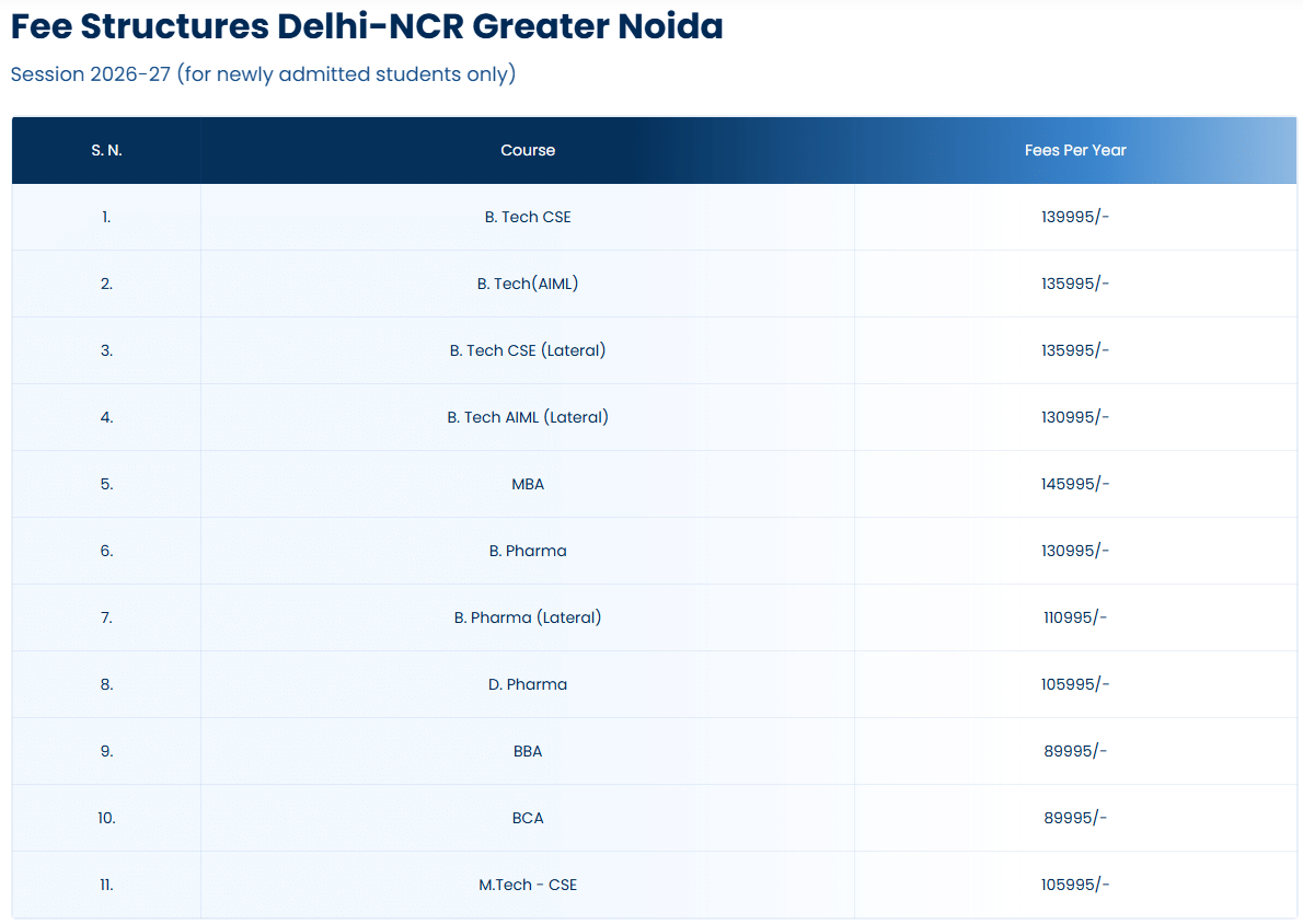 | United Group of Institutions Greater Noida | ₹ 2.12 Lakhs |