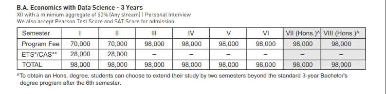 - The total fees for BA {Hons.} Economics is ₹ 5.6 Lakhs.
