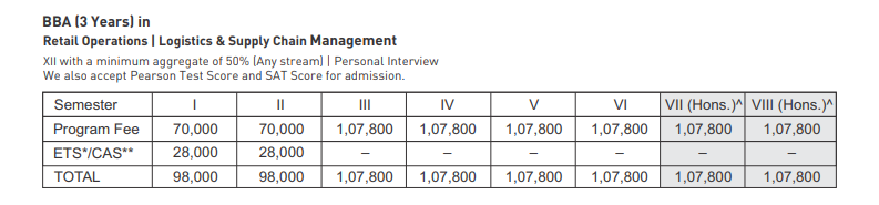- The total fees for BBA Logistics and Supply Chain Management is ₹ 4.48 Lakhs.