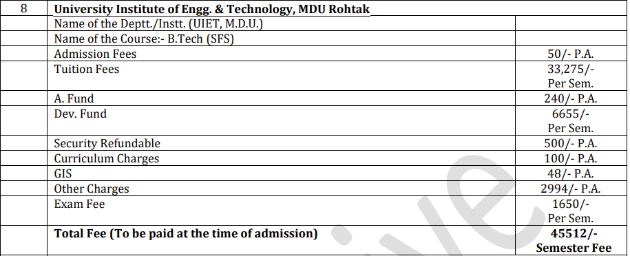 The total cost for a four-year B.Tech program is approximately Rs 2.97 lakh, excluding hostel and mess charges.
