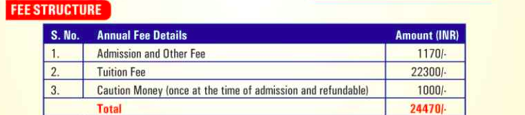 | Fees | Year 1 (in INR) | Year 2 (in INR) | Year 3 (in INR) |