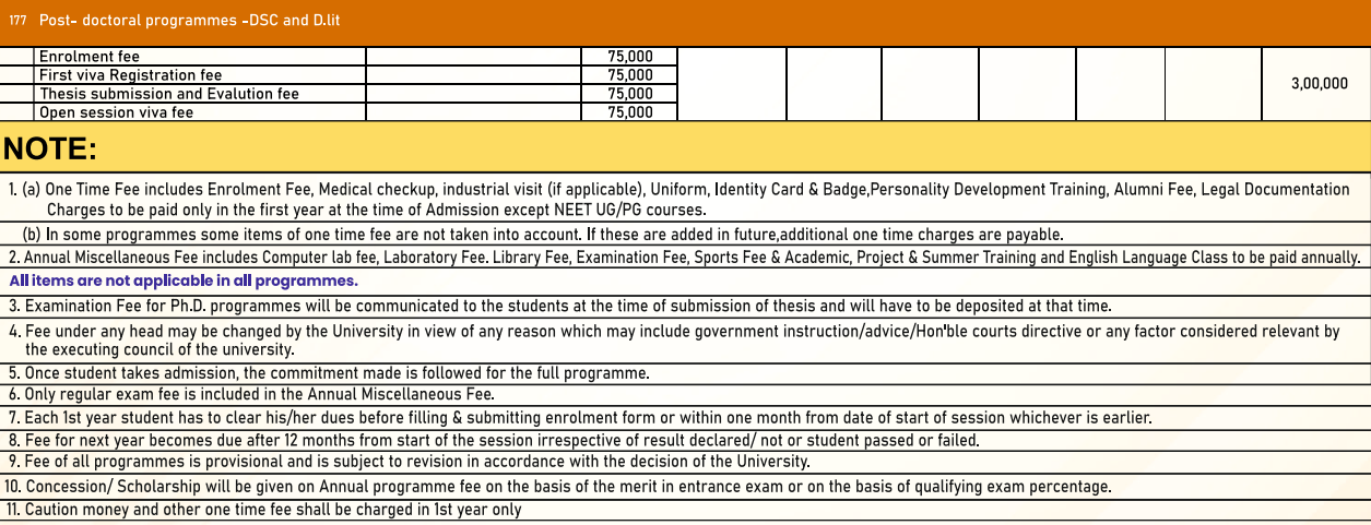 | Fees (2025 - 2026) | Year 1 (in INR) | Year 2 (in INR) | Year 3 (in INR) |
