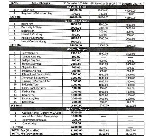 | Rajkiya Engineering College Azamgarh | ₹ 3.45 Lakhs |