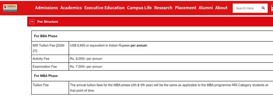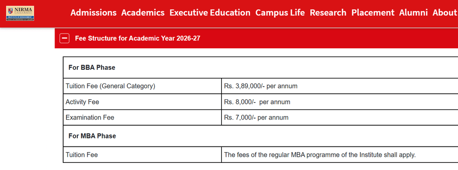 Scholarships are available, covering 50% to 100% of tuition fees, awarded based on academic performance and financial need, with additional aid through the Vidya Lakshmi portal. The BBA program fees range from INR 2.25 to 3 lakh annually, with a total estimated cost for the five-year course between INR 20 to 30 lakh, supported by education loans from a dedicated bank within the university.