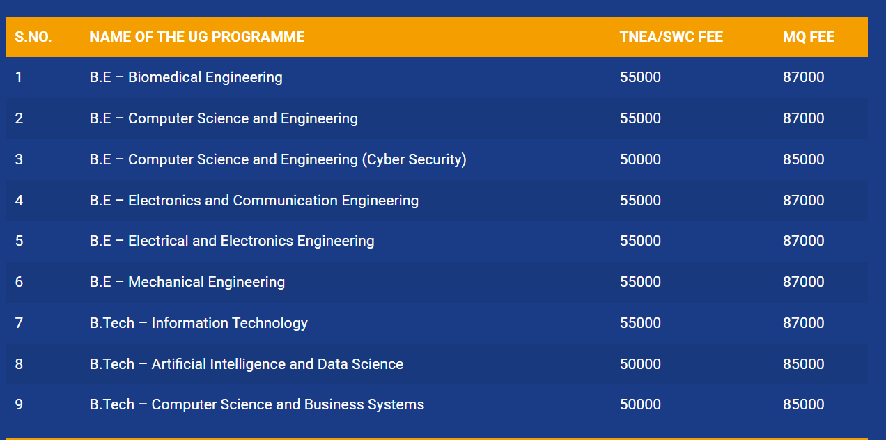 | Fees (2025 - 2026) | Year 1 (in INR) | Year 2 (in INR) | Year 3 (in INR) |