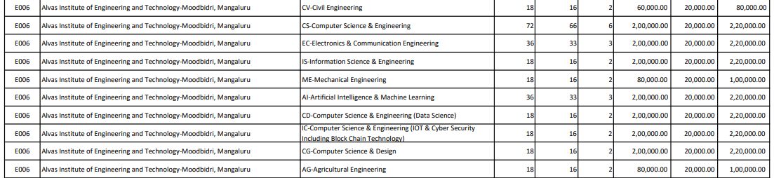 Find detailed Alva's Institute of Engineering and Technology Mangalore BE {Lateral} Information Science and Engineering fees, eligibility, admission dates, cutoff and ranking below.
