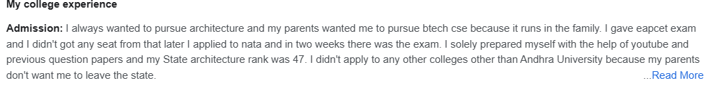 Importantly, the university offers affordability and strong placements, attracting students from across Andhra Pradesh. Andhra University's reputation for academic excellence, government-affiliated low fee structure, and its strategic historic location make it a preferred choice for many aspiring engineering students.