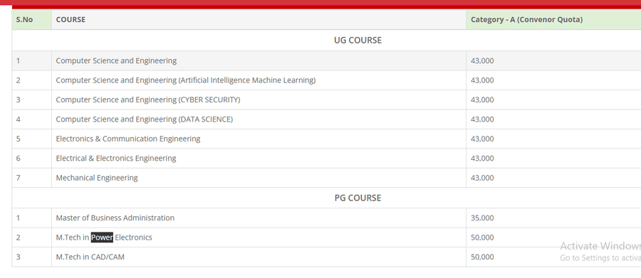 | Fee Type | Total Amount (INR) |