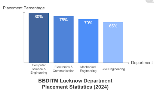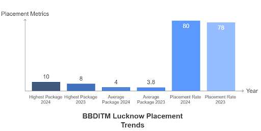 The placement scenario at Babu Banarasi Das National Institute of Technology and Management (BBDNITM) is varied, with a focus on Computer Science (CS) and Information Technology (IT) branches. Approximately 60% to 80% of students are placed, with the average package ranging from Rs. 3 to 5 lakhs per annum, and the highest reported package around Rs. 44 lakhs per annum. Top recruiters include companies like TCS, Wipro, Infosys, HCL, and Capgemini.