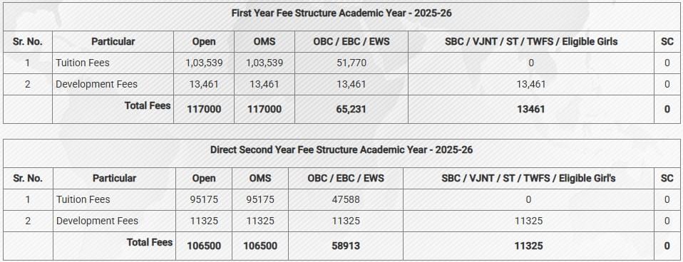 The college's structured academic schedule includes two exams per semester, with a high student success rate. Academic fees are under Rs 90,000 annually, with CAP Round admissions at Rs 35,000, management admissions at Rs 65,000, and reserved categories' fees from Rs 1,500 to Rs 50,000. TFWS students pay about Rs 8,000. Various scholarships are available, ensuring fairness in fee collection. Internships are mandatory from the second year, with companies like TCS, Infosys, and Wipro offering placements.