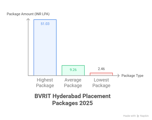 Ans. BVRIT Hyderabad offers the highest package of INR 51.03 LPA, and the average package is offered at INR 9.26 LPA, while the lowest package offered at BVRIT Hyderabad is INR 2.46 LPA.