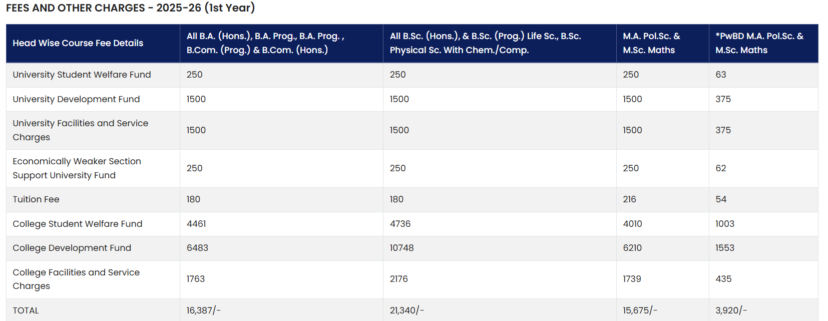 | University Welfare Fund | ₹250 | ₹250 |
