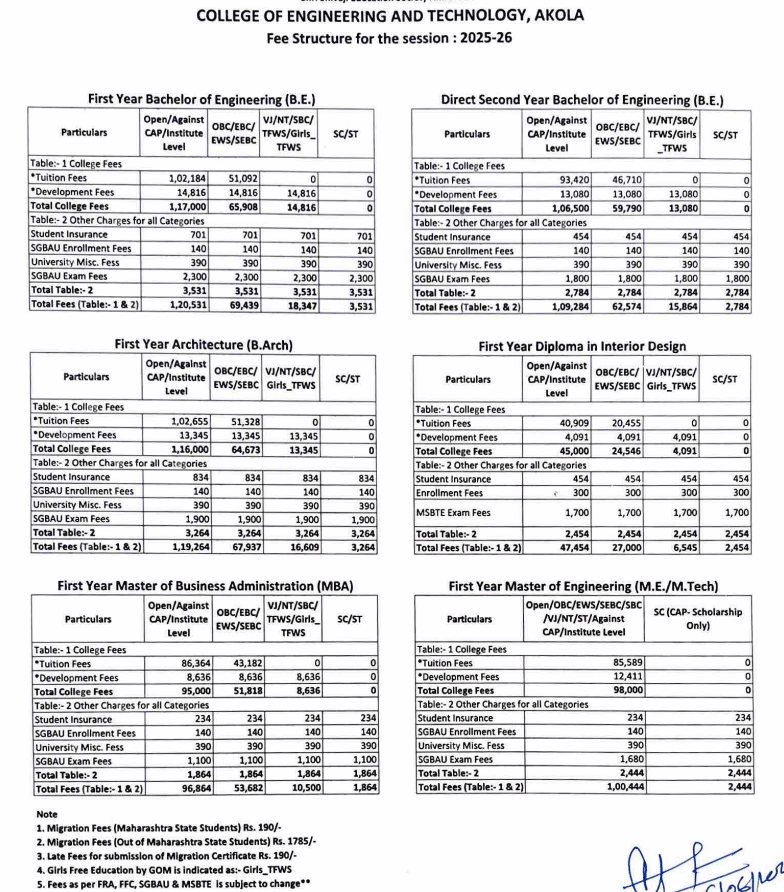 College of Engineering and Technology Akola Diploma Interior Design fees in first year is ₹ 47,454. The detailed fees is mentioned below.College of Engineering and Technology Akola Hostel Fee for Male is ₹ 15,000 to 18,000. Hostel Fee for Female at College of Engineering and Technology Akola is ₹ 21,000.