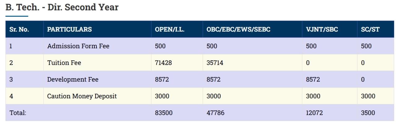 | Fees (2025 - 2026) | Year 1 (in INR) | Year 2 (in INR) | Year 3 (in INR) |
