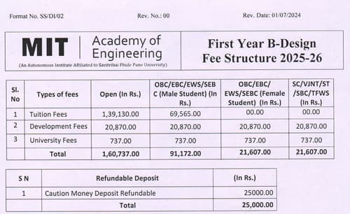 The minimum eligibility for admission to B.Des Product Design at MITAOE is 10+2. Candidates are allotted seats based on MHT-CET.