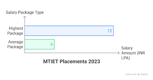 MTIET Palamaner Placements in 2023: The highest package offered is INR 12 LPA, the average package offered is INR 4.0 LPA, and the lowest package offered is INR 2.13 LPA. The recruiters are Wipro, TCS, Juspay, Infosys, HCL, Reliance, LIC, Accenture, Serco, Tech Mahindra, and more.
