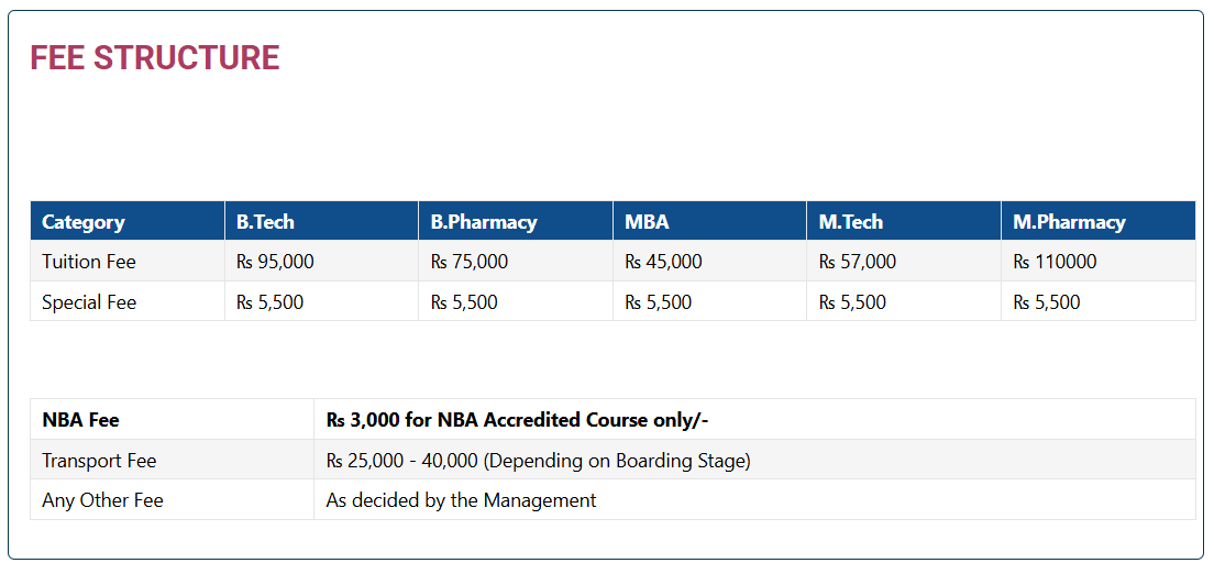 - This includes a total tuition fee of ₹ 2.25 Lakhs, Other Fees of ₹ 16,500.