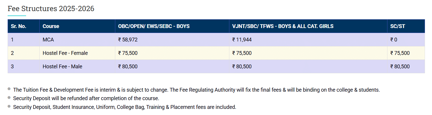 | eligibility | Graduation + 50% + MAH-MCA-CET |