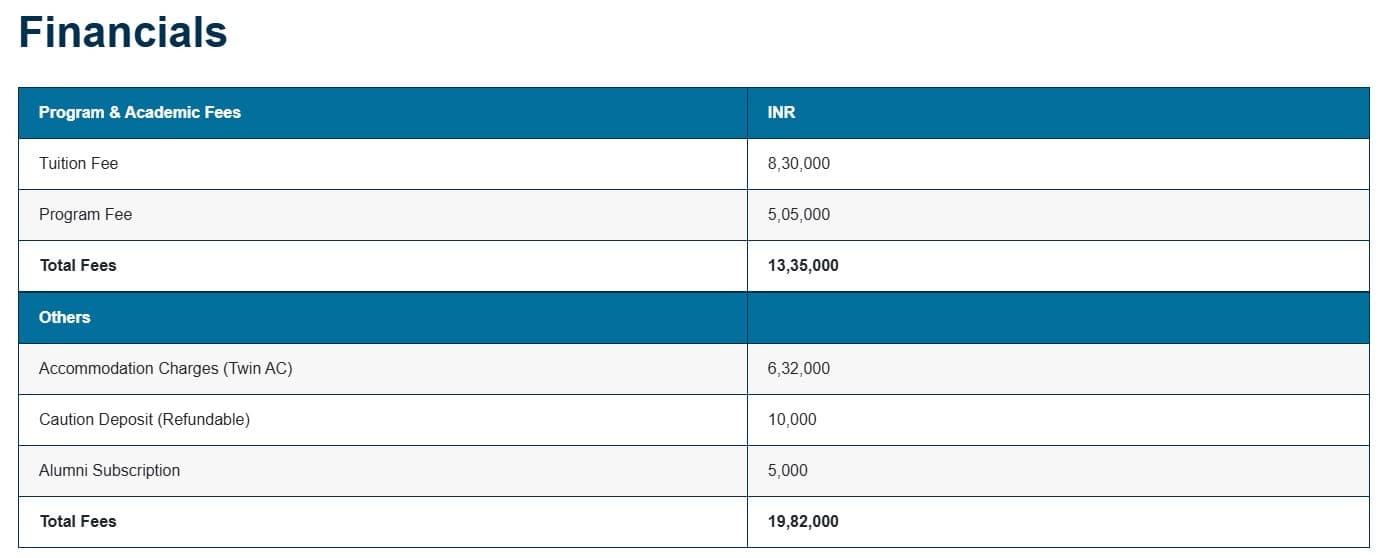 - Candidates need to pay ₹ 6.58 Lakhs in the first year.