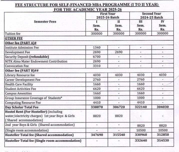 National Institute of Technology, Department of Humanities Social Sciences and Management Surathkal Hostel Fee is ₹ 35,310.