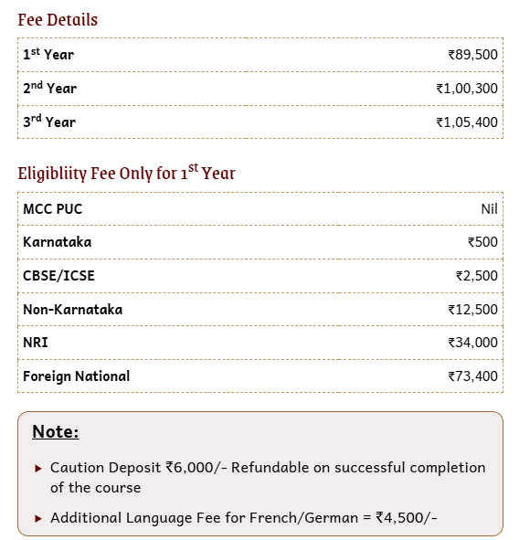 Earlier, BA Applied Economics fees at Mount Carmel College Autonomous was ₹ 3.14 Lakhs (in 2025) for the entire course duration. This shows that the fee has remained unchanged since 2025.