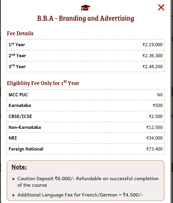 The curriculum includes internships from the first year, though these are often unpaid and inconsistent, leading students to explore additional off-campus opportunities. Financially, the college offers a flexible fee structure with EMI options and accepts payments via cash or credit. For the 2022 batch, the tuition fee was Rs. 185,000, but it has risen by 2024 following the transition to a co-ed institution. The total educational cost, including tuition and other fees, is approximately Rs. 650,000 or less.