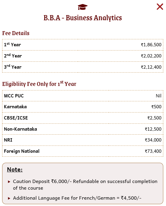 - The total fees for BBA Business Analytics is ₹ 6.2 Lakhs.