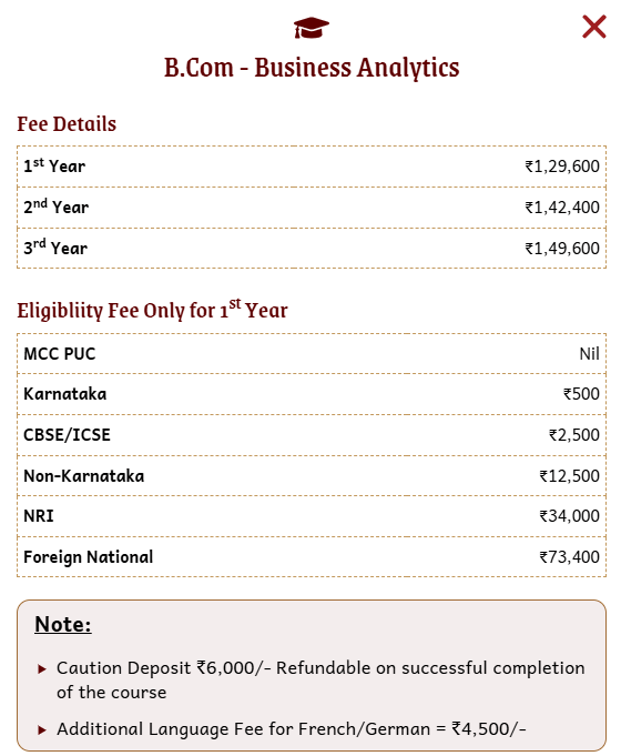 - The total fees for B.Com Business Analytics is ₹ 4.4 Lakhs.
