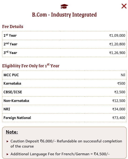 The course admission process involves an online application followed by securing a seat upon release of 12th-grade results, with industry-integrated courses available when regular seats fill up. The college is autonomous, maintaining a strict attendance policy. Faculty are mostly helpful and knowledgeable, though some variability in teaching quality exists. The annual fee is approximately 85,500 INR, with specific courses like B.Com Industry Integrated costing 92,009 INR. Students can choose a foreign language for an additional 5,000 to 6,000 INR.