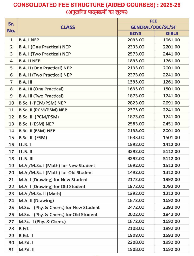 | Fees (2025 - 2026) | Year 1 (in INR) | Year 2 (in INR) | Year 3 (in INR) |