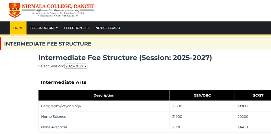 - Caution Deposit of Rs. 360 is refundable at the time of leaving the college.